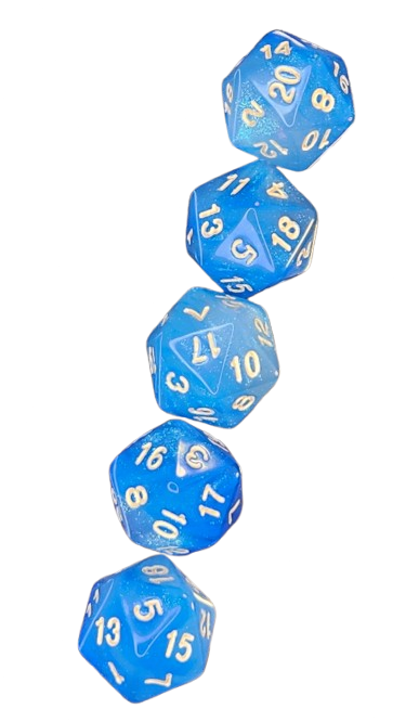 A sleek blue spindown d20. Perfect for tracking life totals with accuracy and flair.